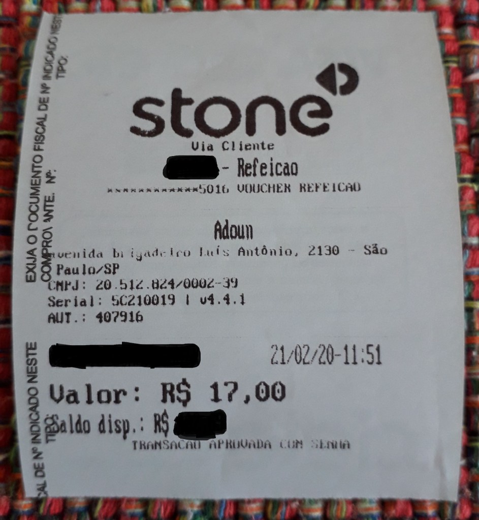 Fazia tempo que não comia um shawarma, e resolvi ir recentemente ao Restaurante Adoun, na Avenida Brigadeiro Luís Antônio a uma quadra da Avenida Paulista – cujo local já havia “marcado” da janela do ônibus. O sanduíche árabe (foto acima) não é ruim, é muito prático – daquele jeito pá-pum, pediu e está na mesa. Achei, no entanto, que por ser desta forma o preço poderia ser mais enxuto também. Aí me lembrei que estamos numa região costumeiramente cara de São Paulo.