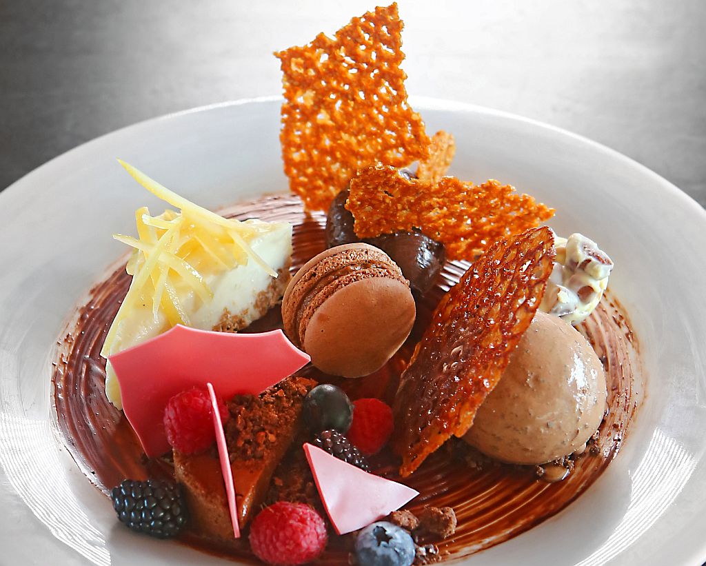O dolce traz uma degustação com sorvete trufado, mousse de toblerone, tiramisu à moda do chef e sorvete de vanila de Madagascar com calda quente de frutas vermelhas. O digestivo fica por conta do cálice de vinho de sobremesa e do licor Limoncello.
