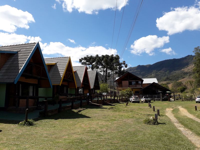 À esquerda, os quatro chalés e, ao fundo, o restaurante do Rancho