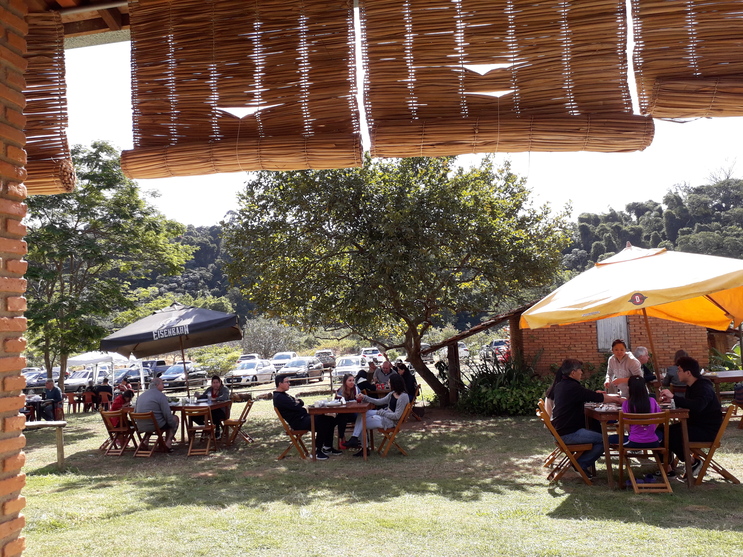 O restaurante ocupa um galpão defronte a um amplo gramado. O lugar é bonito, com clima total de campo. Assim que você entra na propriedade, há um estacionamento à direita e a adega à esquerda, onde vale a visita após o almoço para comprar vinho e suco de uva. Uma estrada leva ao restaurante e a outro bolsão, bem maior, para os carros estacionarem.