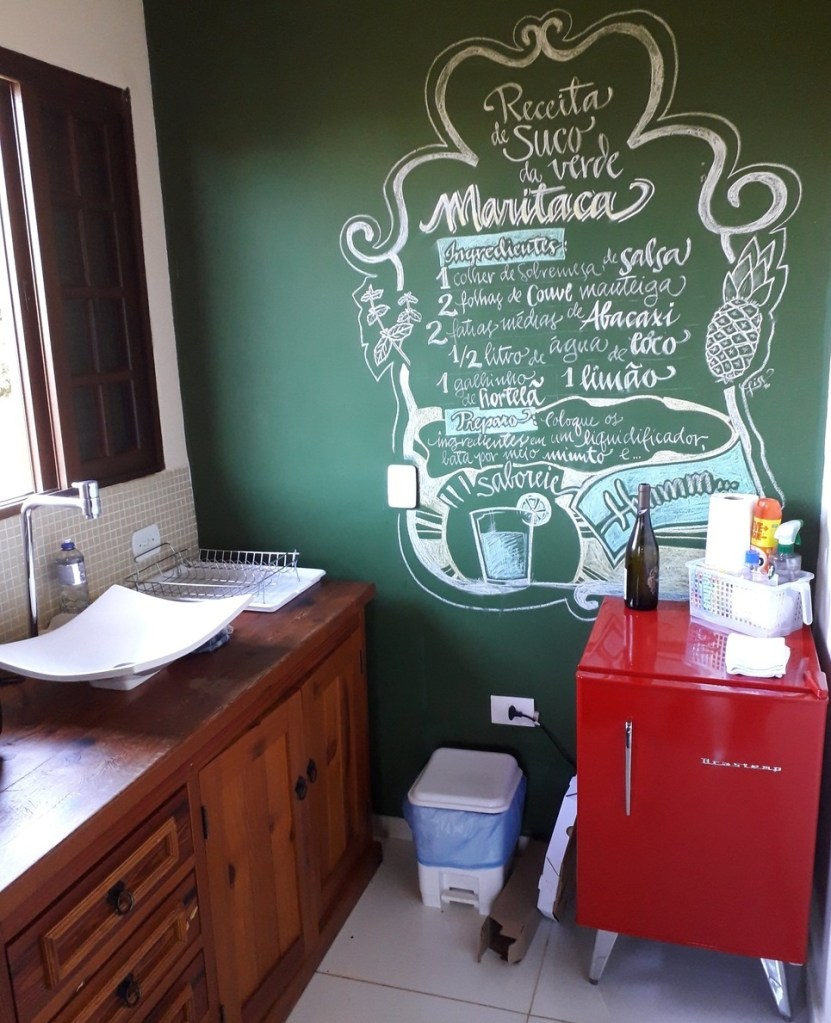 Não vou descrever o que há na casa, pois você pode ler na descrição da página na plataforma. O imóvel não é grande, mas os espaços são muito bem aproveitados. Gostei da decoração, da cama bem confortável, da boa qualidade do chuveiro, do bom sinal de internet, do deque de madeira com mesa e duas cadeiras e da cozinha bem equipada, ainda que não há fogão ou fogareiro.