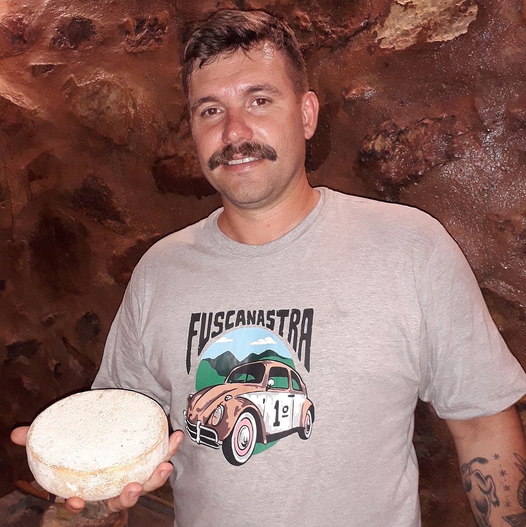 O produtor Guilherme Ferreira exibe um de seus queijos (fotos Claudio Schapochnik/Que Gostoso!)