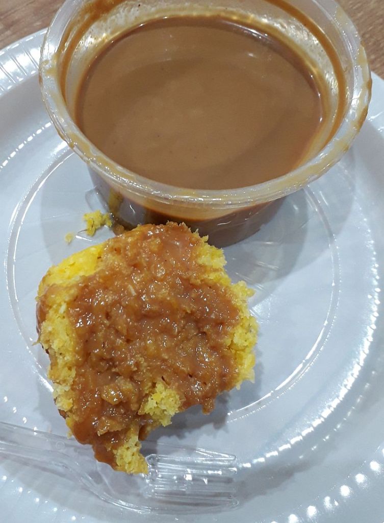No evento, Douglas e Edna venderam o bolo de pamonha inteiro e em pedaço – sendo que desta forma servido com doce de leite, bem líquido – também produzido no sítio.