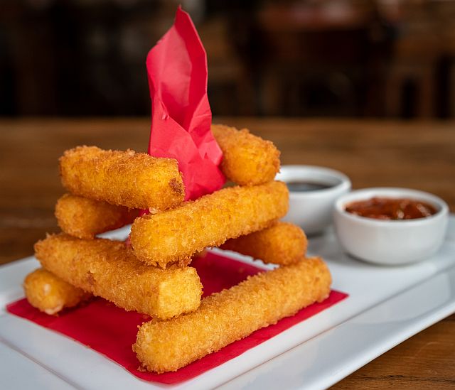 tiras e empanados montados em forma de fogueira (fotos divulgação)