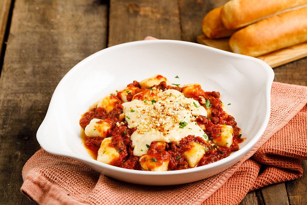 Outra opção é o Creamy Meat Sauce Alfredo Gnocchi (R$ 59), servido com uma combinação dos tradicionais molhos da casa, o molho de carne e alfredo. Para harmonizar, a opção é o vinho português Tinto dos Amigos, blend de Aragonez, Castelão Tinto Miúda (R$ 17 a taça).