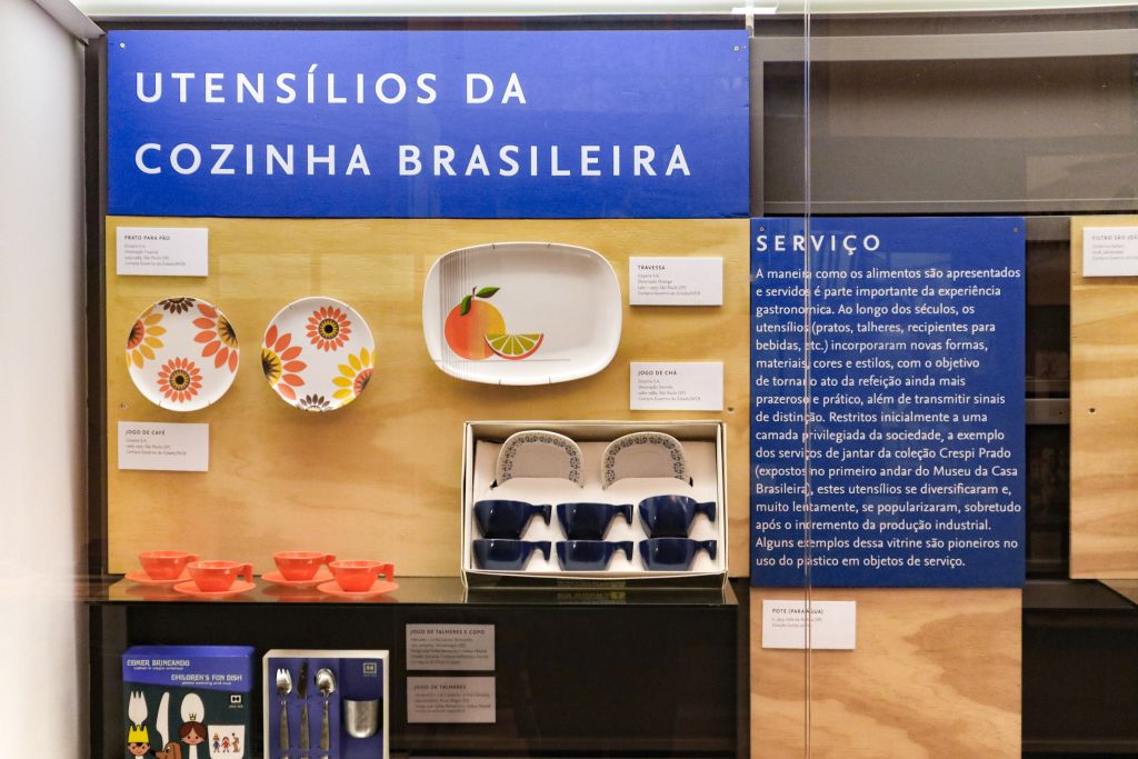 “A maneira como os alimentos são apresentados e servidos é parte importante da experiência gastronômica”, continua o MCB por meio de um comunicado. “Ao longo dos séculos, os utensílios (pratos, talheres, recipientes para bebidas etc) incorporaram novas formas, materiais, cores e estilos, com o objetivo de tornar o ato da refeição ainda mais prazeroso e prático, além de transmitir sinais de distinção. Restritos inicialmente a uma camada privilegiada da sociedade, a exemplo dos serviços de jantar da coleção Crespi Prado (expostos no primeiro andar do MCB), estes utensílios se diversificaram e, muito lentamente, se popularizaram, sobretudo após o incremento da produção industrial. Alguns exemplos dessa vitrine são pioneiros no uso do plástico em objetos de serviço.”