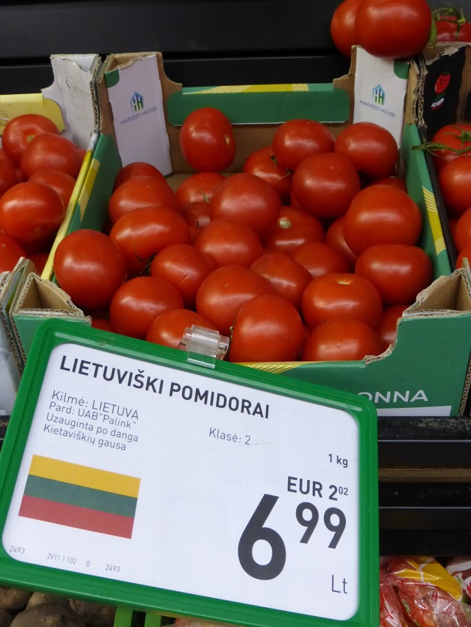 Além de achar tudo o que precisava, o que também valeu foi a “aula” que tive em lituano sobre os nomes de frutas, verduras e legumes. Trata-se de uma língua bem difícil para nós de línguas neolatinas, como o português.