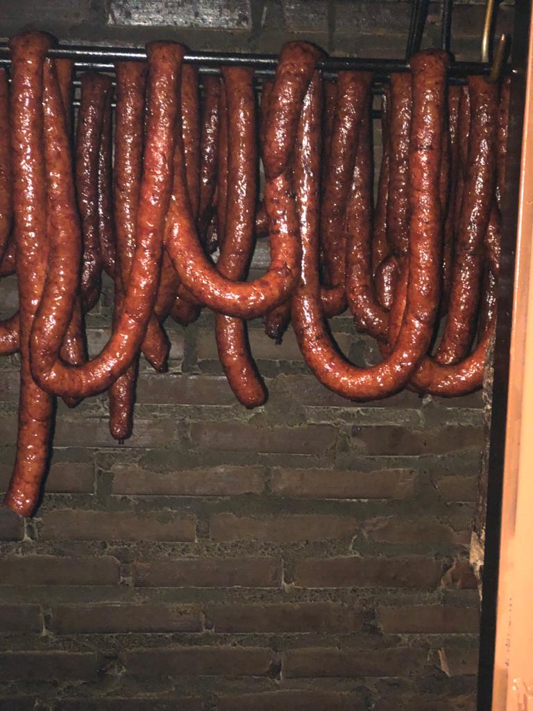 Linguiças frescas, feitas pelo chef Miro, no defumador…