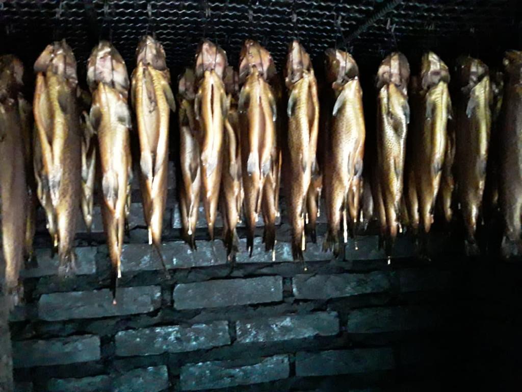 As trutas sendo defumadas