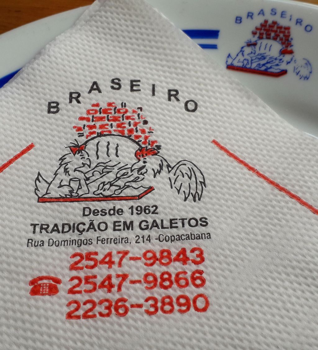A cidade do Rio de Janeiro tem uma boa lista de ícones gastronômicos e, entre estes – sanduíche de pernil com abacaxi e biscoito de polvilho Globo, por exemplo –, o galeto é presença marcante. O povo carioca e nós turistas adoramos. Ótimo exemplo para comer o franguinho assado é o Braseiro, a uma quadra da praia de Copacabana. Funciona desde 1962.